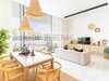 obývací pokoj se světlým jídelním koutem a minimalistickou moderní