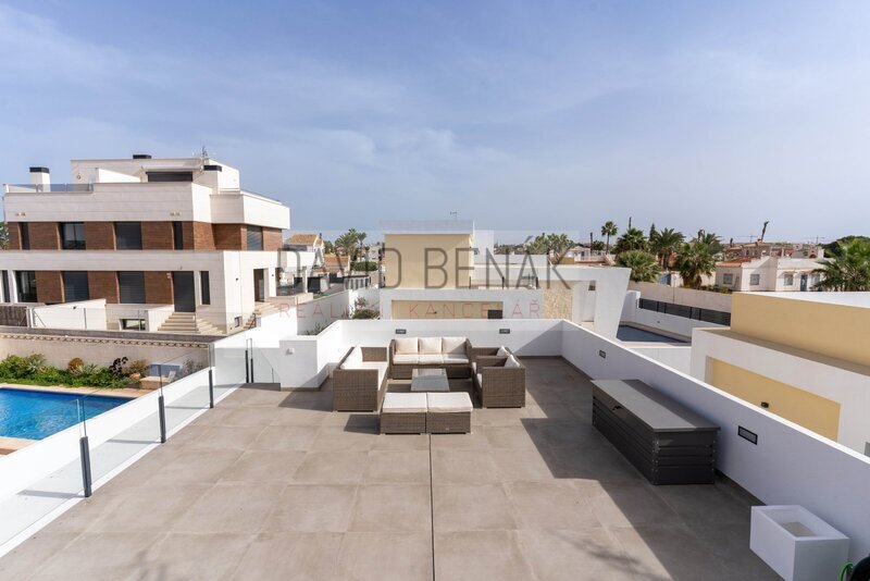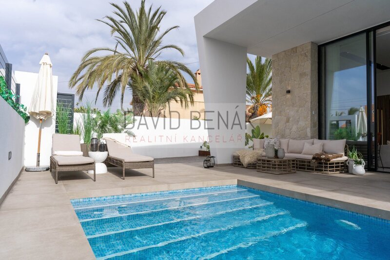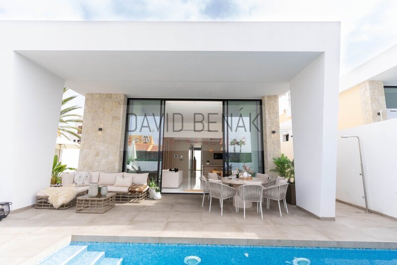 Moderní vila ve skandinávském stylu. Novostavba s výhledem na Růžové jezero – Torreta, Torrevieja.