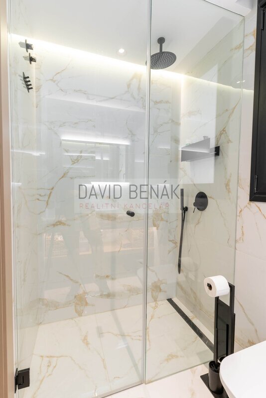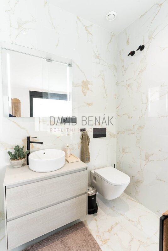 panelů jako v kuchyni. Chodba Vás zavede do stylové koupelny, do dvou