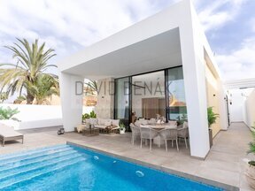 Moderní krásná vila s vlastním bazénem. Novostavba s výhledem na Růžové jezero Torreta, Torrevieja.