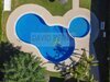 společnému bazénu obklopenému upravenou zahradou s palmami, který je