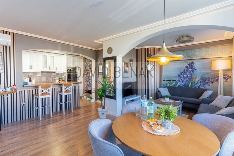 na který navazuje jídelní kout a bar s kuchyní, dvě vybavené ložnice