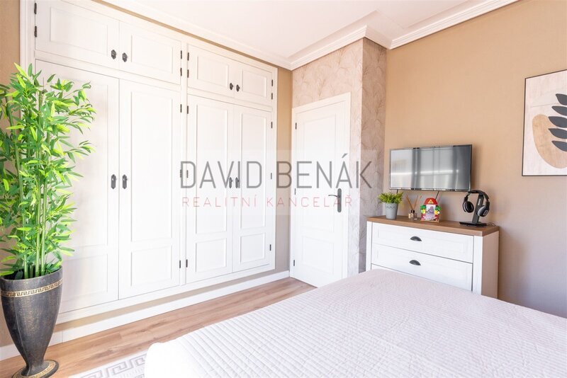 s vestavěnými skříněmi a dvě koupelny, jedna s vanou a druhá se