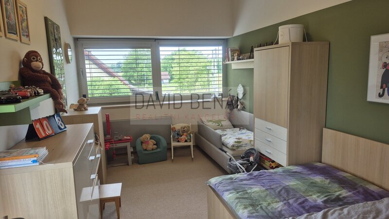 2 x dětský pokoj (2 × 14 m2), prostorná koupelna (14 m2) s vanou,