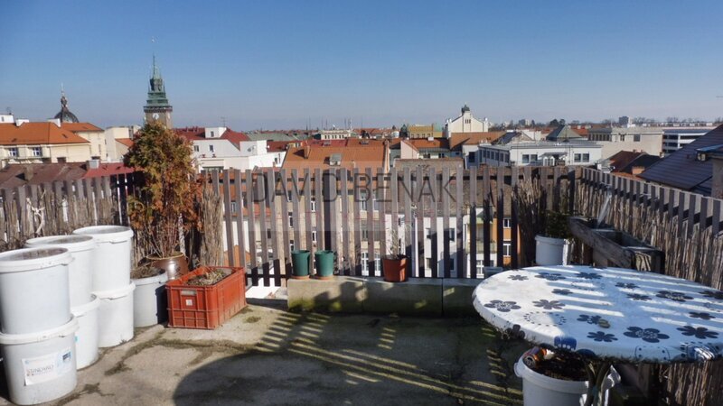 Nabízíme k pronájmu podkrovní byt 2+kk o celkové výměře 63 m2 se skvělou prostornou terasou v mezonetové části bytu v ulici Za Pasáží – Zelené Předměstí, v samém centru města Pardubice. Jedná se o byt v posledním 4NP zděného domu bez výtahu. Dispozice: chodba, prostorný obývací pokoj s odděleným kuchyňským koutem a se vstupem po schodišti na pěknou terasu s hezkým výhledem na město. Dále ložnice a koupelna s vanou a toaletou. Byt se pronajímá bez vybavení, pouze se starší kuchyňskou linkou. Jedná se o hezké a klidné bydlení v centru města. Machoňovou Pasáží jste za 1 minutu chůzí na Třídu Míru. Veškerá občanská vybavenost v místě, zastávky MHD v těsném dosahu. Nájem 14 000,– Kč + poplatky za energie cca 4 200,–Kč.